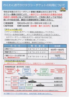 こちら今まで一枚750円というところで初乗り運賃の助成をしていたんですけれども、3月の16日なので来週の月曜日からタクシー運賃の改定がございまして、ちょっと助成内容が今までと変わる部分が出ております。