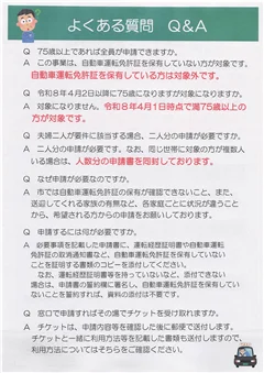 皆様、大体の方は自主返納をちゃんとしていただいている形なんですけれども、失効後に運転免許が失効した後に返納した方は対象にならないので、その有効期限内に返納しているかしていないかというところをちょっと見させていただいておりますので、その決定通知書に一枚分もらえるよう、ちょっと今回対象外だよというのを中に書いてますので、対象になった方はその決定通知書を持って、その4階危機管理化に来て受け取りをお願いしたいと思います。