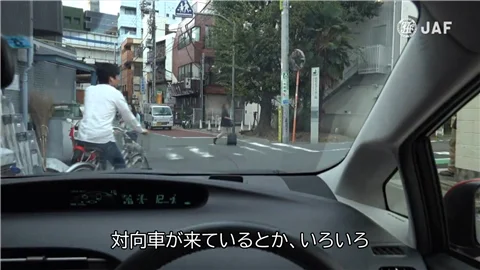 この映像でも、すでに右に車があったりとか歩行者がいっぱいいたりとか、対向車が来ているとか、いろいろ・・・
