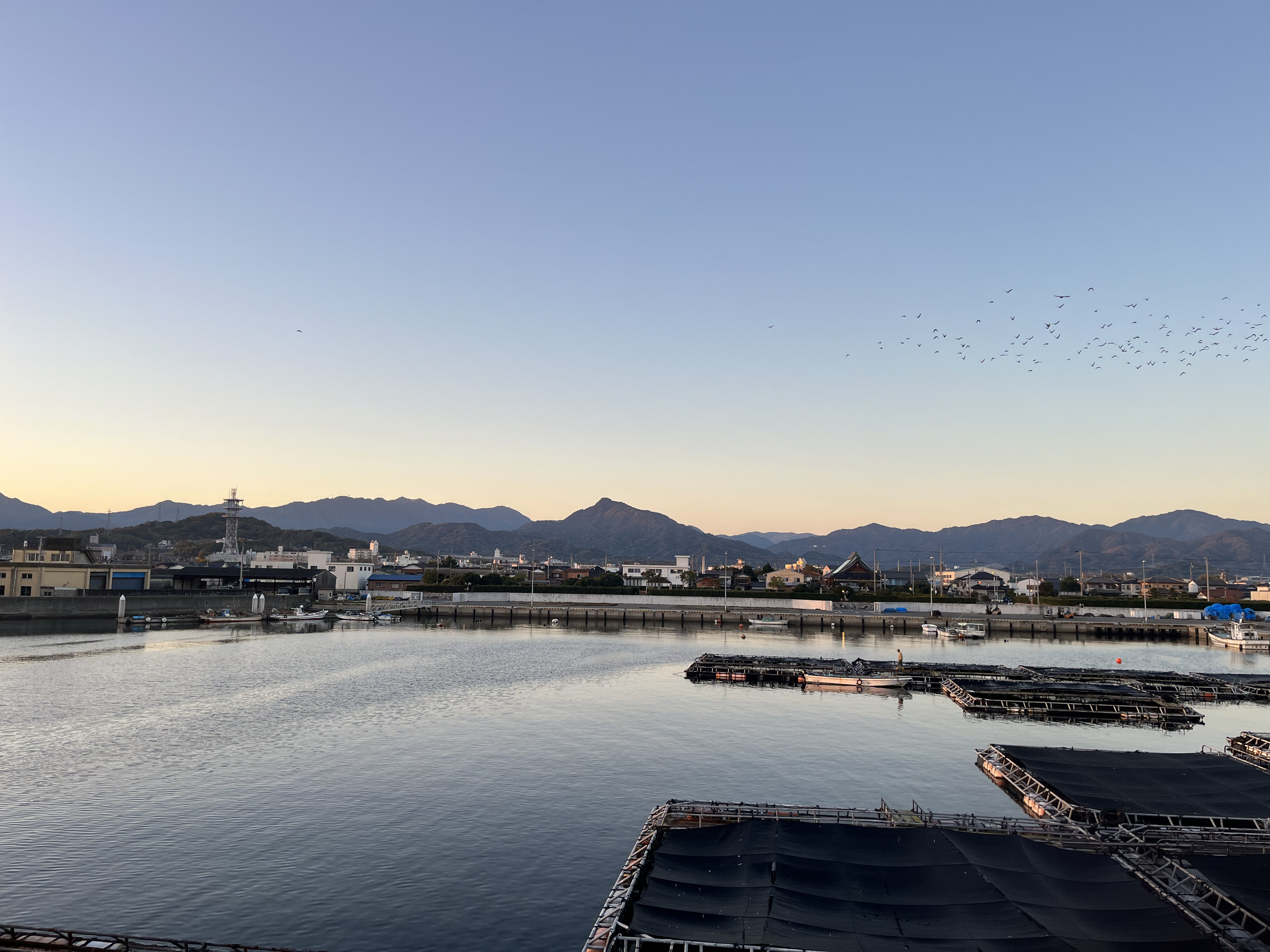 気温8℃、快晴、ぐっと冷え込んで手がかじかむ寒さです。北西の風が穏やかに吹いています。長い貨物船(SG DAWN全長299m 船幅50m,20.9万t)が小豆島航路の大角の鼻灯台に東から差し掛かっています。日曜日の所為か釣り客は多く、東波止に2人、赤灯台に7人、この波止に3人、テトラに4~5人です。この波止でも60㎝くらいのサゴシが釣れた様です。オレンジ色の空に太陽が姿を見せました。