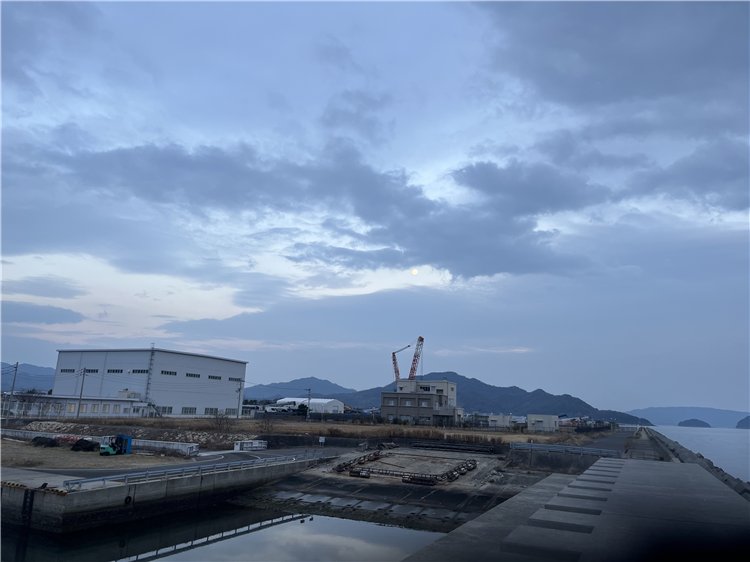気温7℃。雲が空全体を覆い、西の空には少し雲間が見えています。風もなく、海も静かです。20羽~30羽ほどの鵜の群れが1つまた1つと、3組、編隊を組んで東に向かっています。乗り遅れ組もいます。東の空、大麻山の向こうにも雲が拡がり、太陽は雲の向こうです。釣り客はゼロ。帰り際、西の空の雲間にやや細くなった十五日の月の残月が暫く姿を見せてくれました。