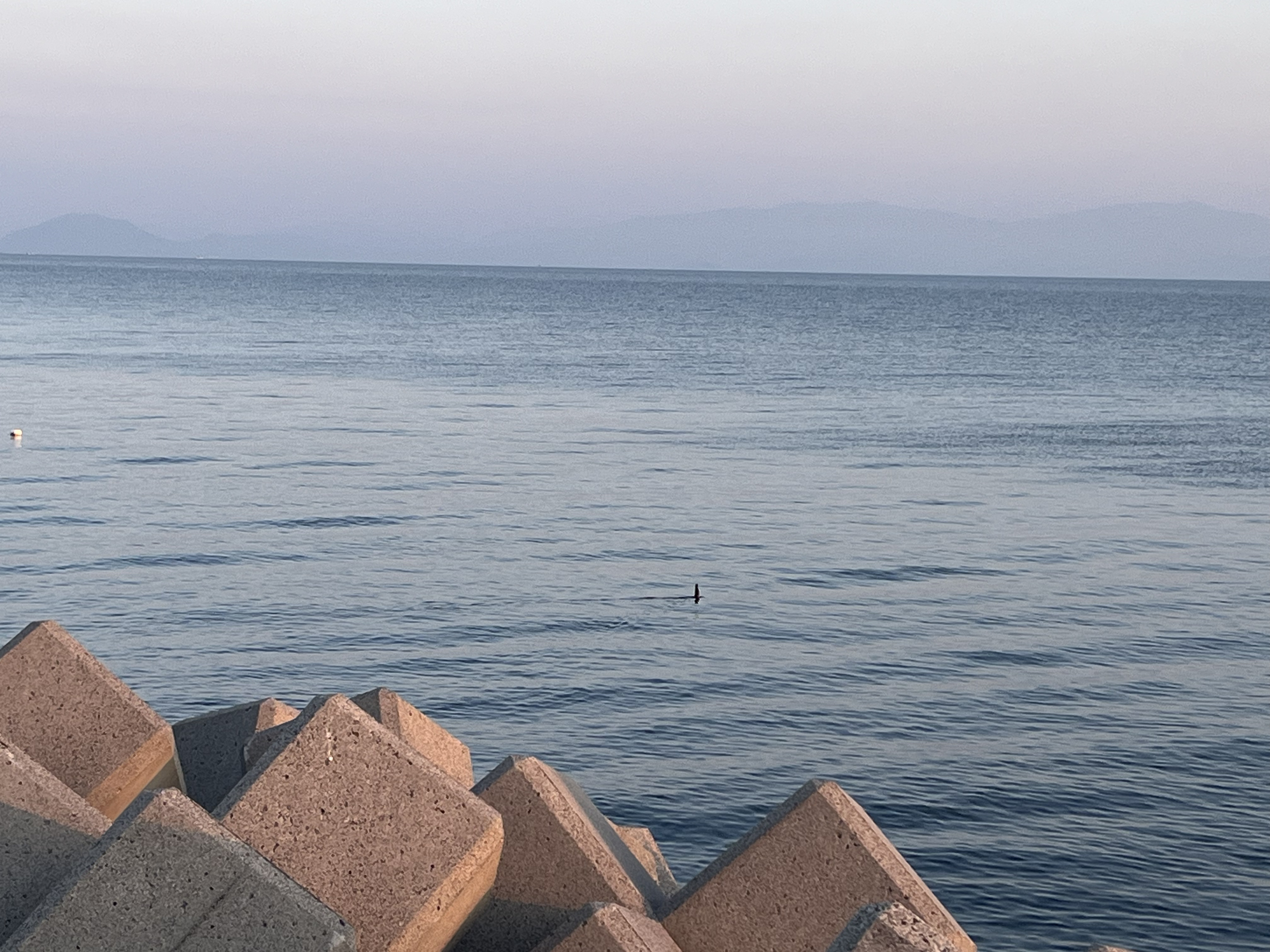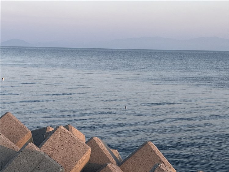 気温4℃、風もなく快晴、空には雲一つ見えません。水平線には霞が懸り、小豆島はうっすらと、淡路島は見えません。南の空には細くなった月が出ています。暫くして、紅い太陽が伊座山塊の南の斜面に出て来ました。阿讃の峰々にはまだ雪が残っています。釣り客はゼロ、港では生簀の作業が始まっています。テトラのすぐ沖で鵜が素潜り漁です。獲物の所為か、のどが太くなって海面に出て来ました。