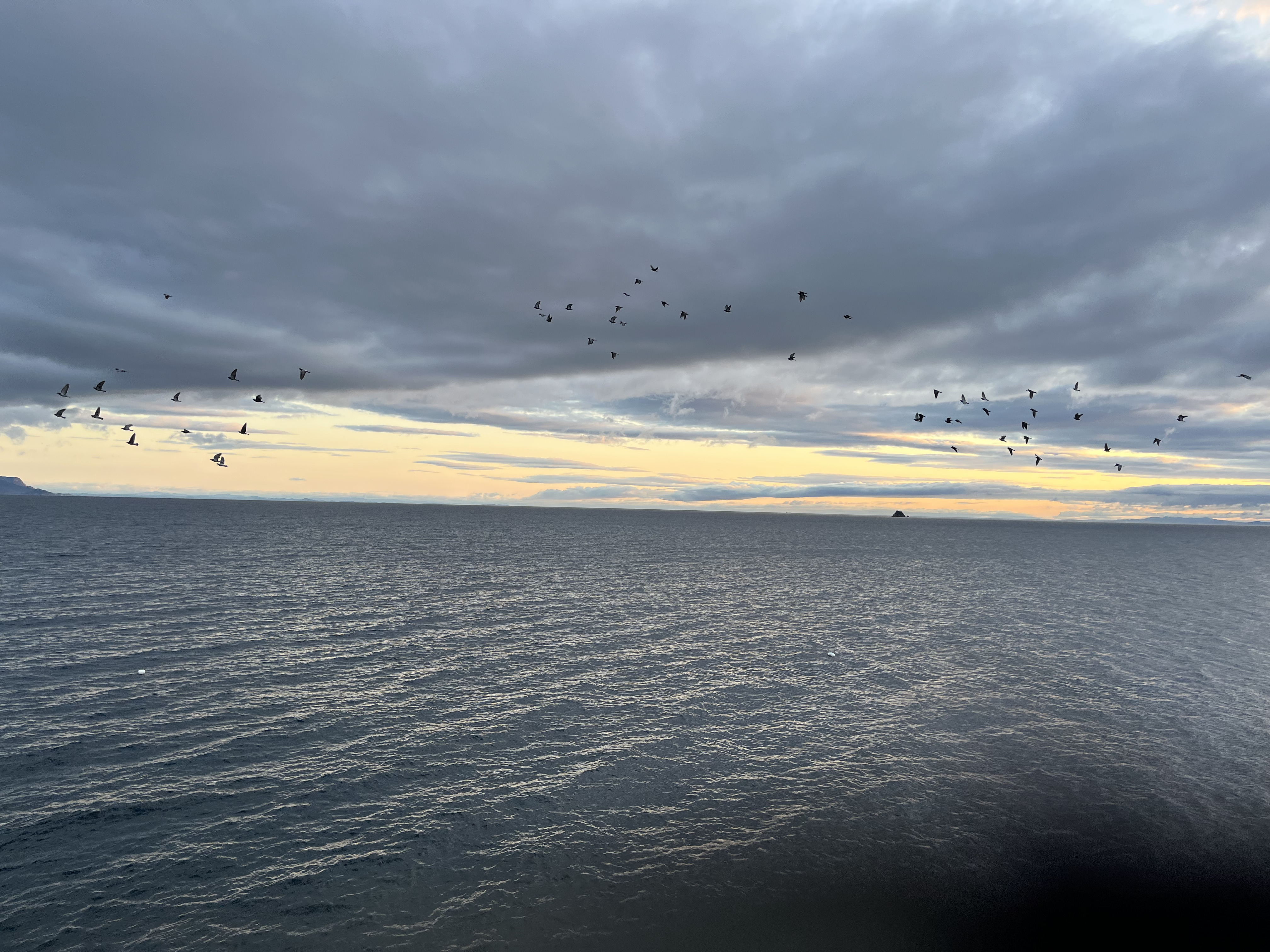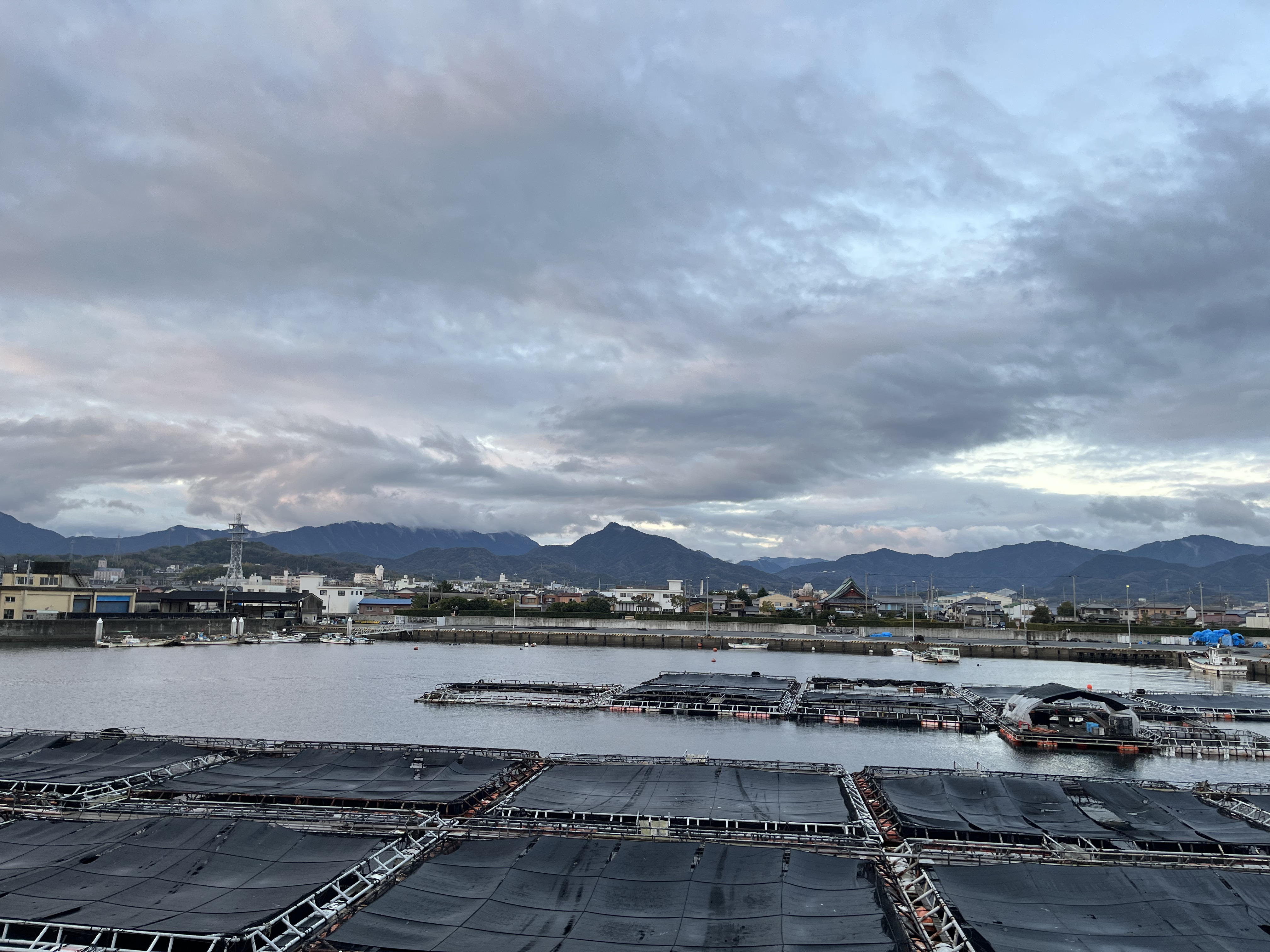 気温10℃、曇り。雨が上がり、空には青空もあって、水たまりがあちこちに見えます。防波堤に上がるとすぐ下のテトラからシラサギの群れが飛び立ちました。空気は澄み、小豆島が朝の光を浴び、寒霞渓の稜線もくっきりです。淡路島はもちろん、雲が懸る六甲山や赤穂の山々も見えます。日の出位置の与治山には雲が懸り、その上の方が明るくなって来ました。鳩の群れが朝の飛翔です。釣り客は赤灯台に1人です。
