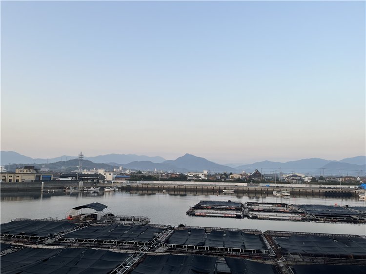 ◀ 春分の日です。気温5℃、晴れ、北西の風が吹き流し角度30°くらいで穏やかです。春霞で淡路島も小豆島も見えません。霞の中から紅い太陽が浮き上がって来ました。いつもの漁船が2艘、出漁です。釣り客はゼロ。散歩客がちらほらです。
