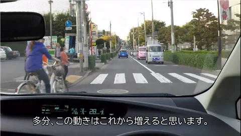 この映像でも、すでに右に車があったりとか歩行者がいっぱいいたりとか、対向車が来ているとか、いろいろ・・・