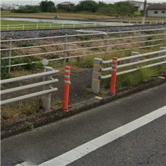 続いて、三好医院さんの目の前にもバス停ございます。上りはちゃんと立ってるんですけど、下り、ちょっとごめんなさい、後ろの方見えないかもしれないんですけど、オレンジのポールがここ立ってます。2本。ここバス停です。ここも。