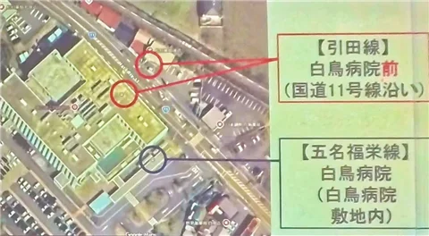 そして今度白鳥病院の方なんですけれども、これちょっとですね。別のところであった意見だったので、今回も載せさせていただいたんですけれども、白鳥病院ってバス停二箇所あるんです。ご存知の方も・・・