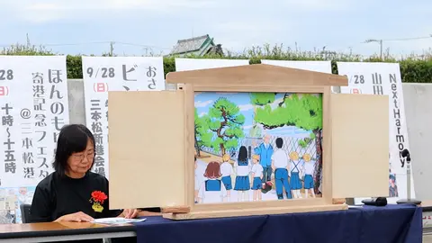 「令和七年、2025年は、女子高等教育150周年戦後80年の記念の年に、日本を代表する女性学者 保井コノの紙芝居が、この生誕地の三本松の皆様の情熱によって誕生したこと、未来につながっていくところを祈念してお祝い申し上げます。」