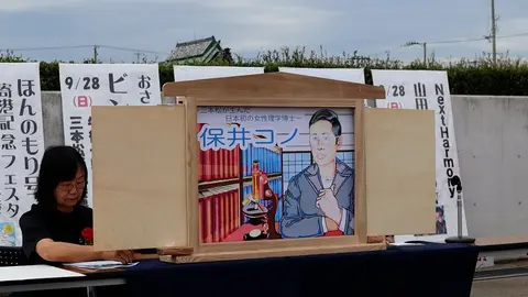 吉祥先生は、いち早く保井コノさんの紙芝居を作成された方、東京で紙芝居とキューリー夫人の理科教室での実験ショーなどを開催されている。この方も、とても有名な方だそうです。