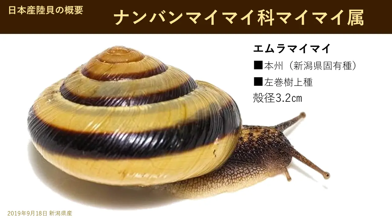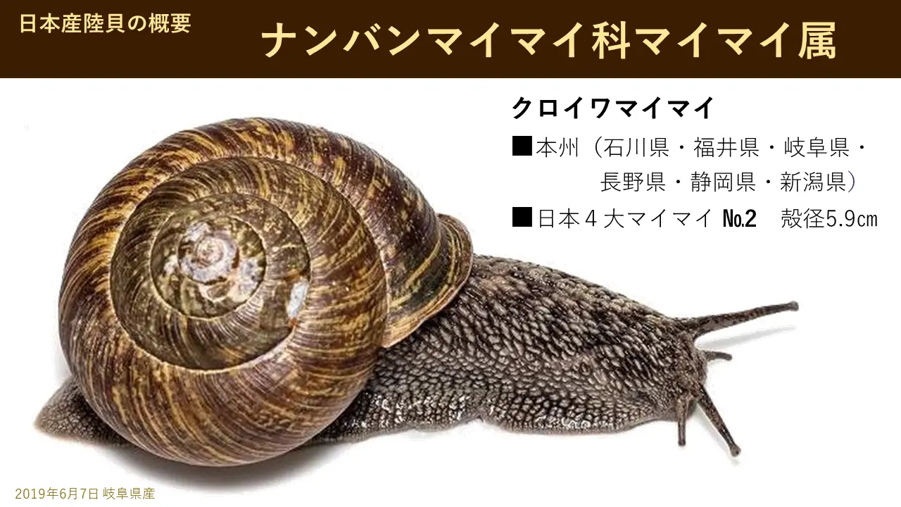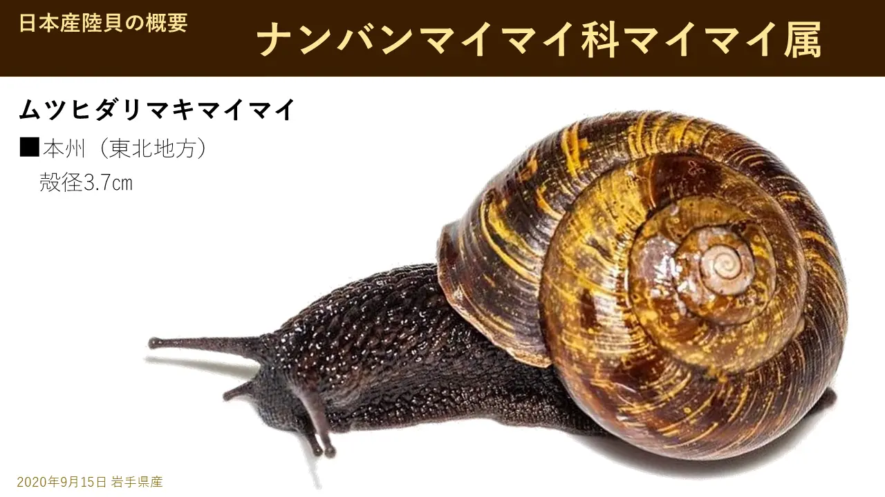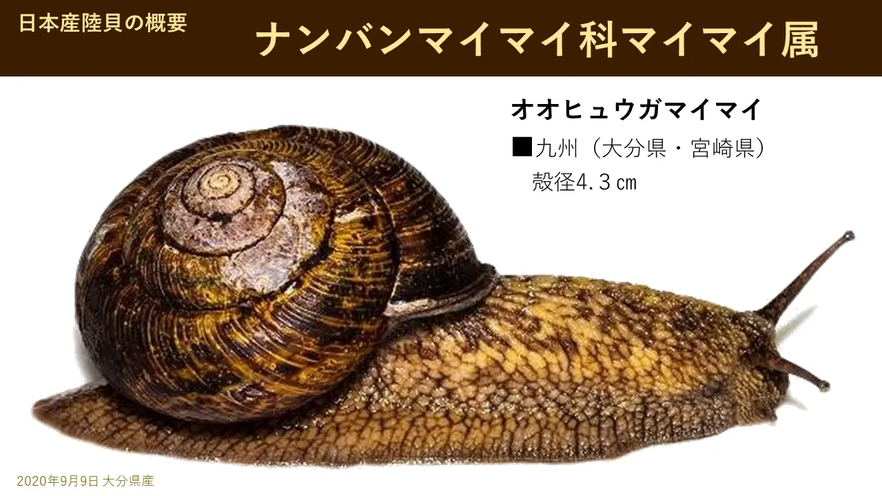 これはあの九州で一番大きなオオヒュウガマイマイヒュウガというのは、九州の宮崎県の北の方日向という。で、まあちょっと、まあ、こういう、これは九州固有種です。