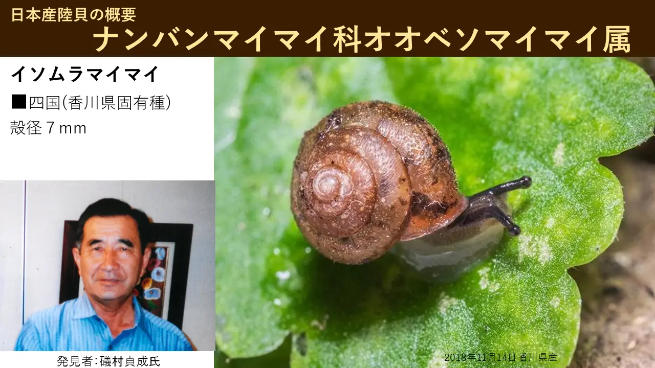 ええ、これはああ。ナンバンマイマイ科のマイマイ属と言いまして、だいたいがあのカタツムリ言うたら、このこういう類を、言うんですね。扁平で、ちょっと大きい。八幡栄作さんいうて