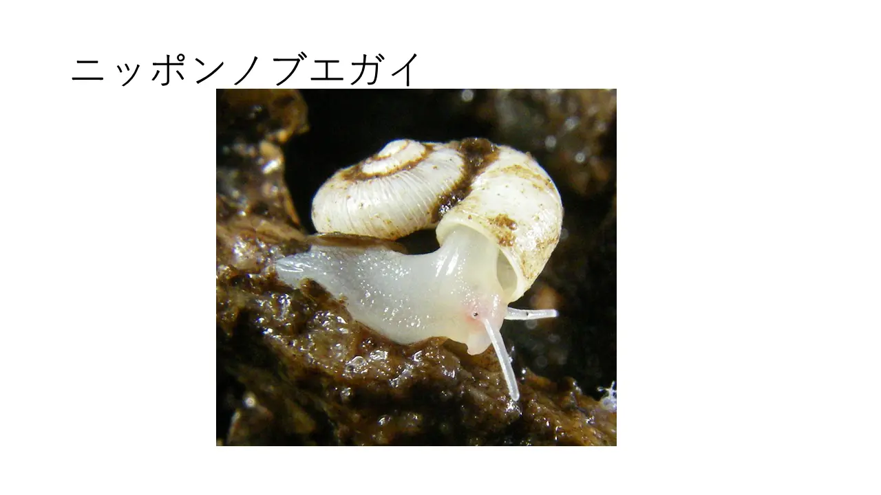 これはタニシによく似てます。でもタニシはですね、ちょっとカタツムリとは種類が違うんですけど、この角の先にオスかメスかの気管があるそうです。