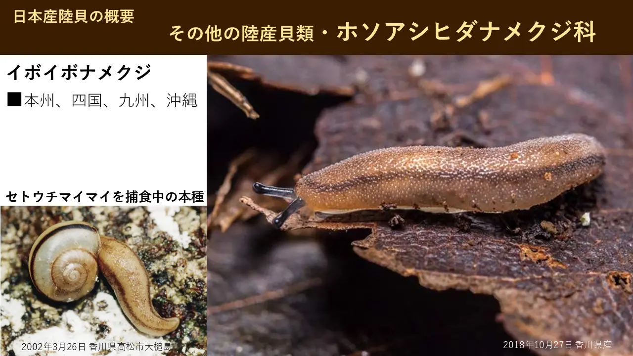 あ、これですね。これ貴重なあの写真なんですけども、ナメクジもカタツムリなんです。ほんでこのつぶつぶみたいなのが出てますので、イボイボナメクジと呼んでいます。