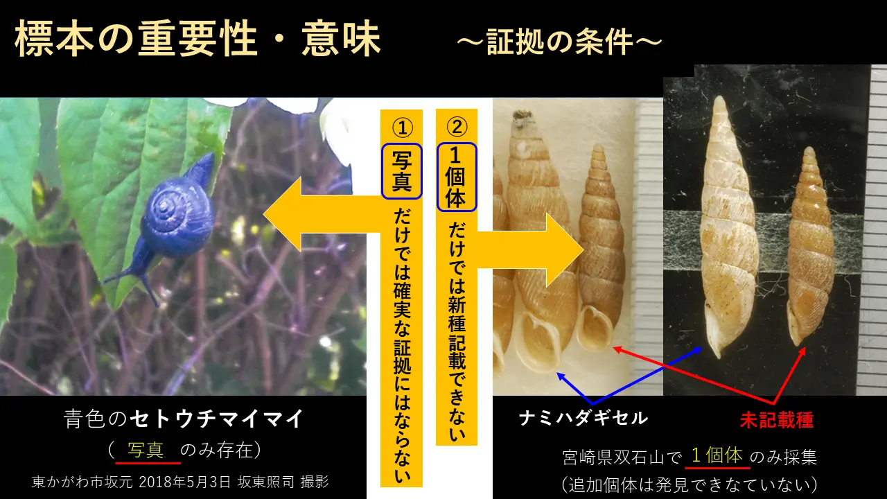 中にはね、言う人がおるんです。そうじゃないんですよ。標本がないと物が言えません。というのは、あ、写真撮った。こうおったんですよって言うて。じゃあ写真が証拠になるか言ったら証拠にならんのです。