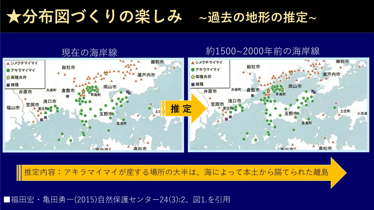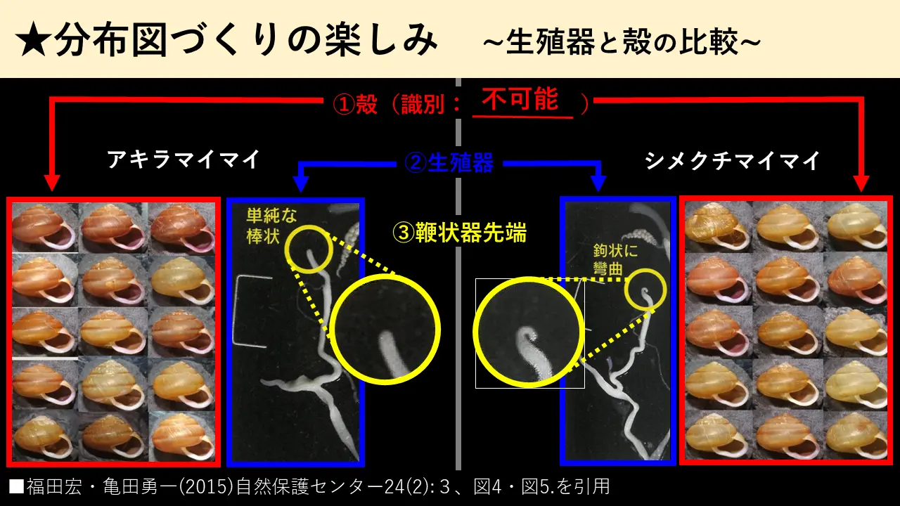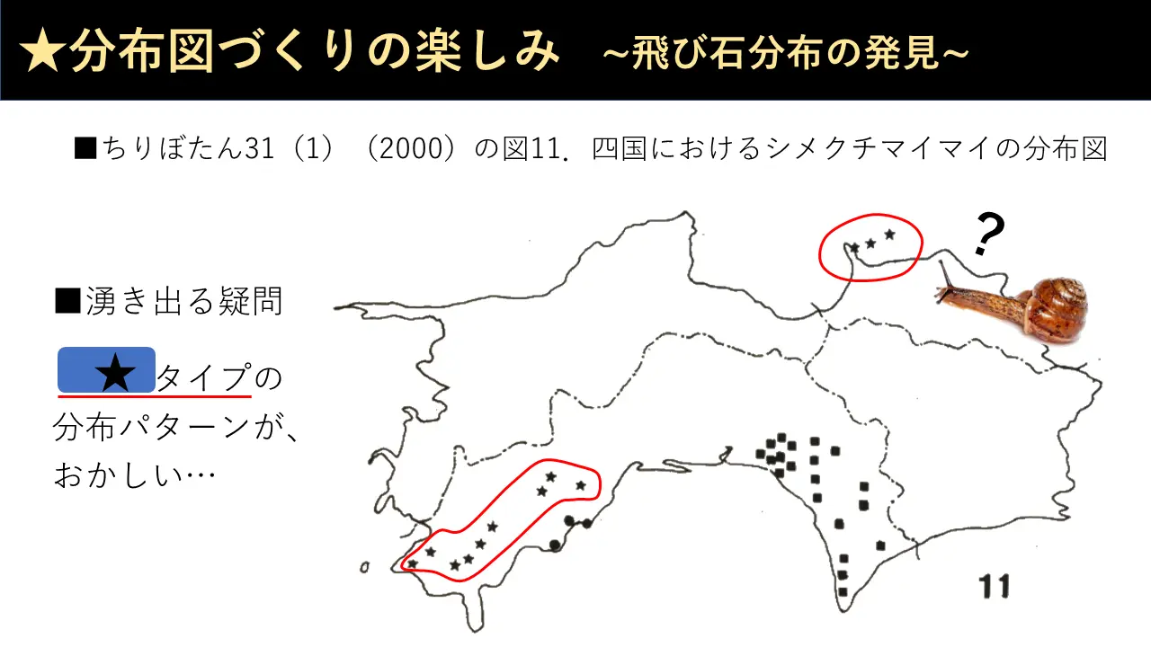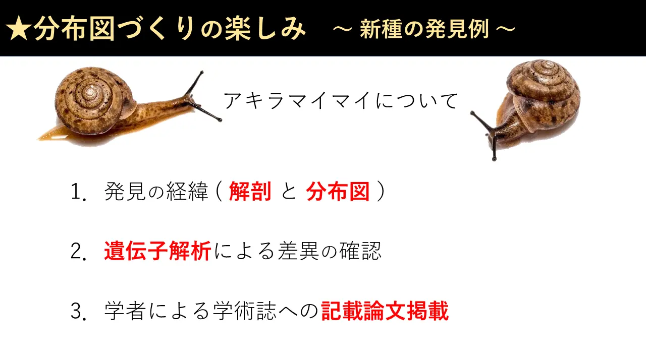 それから、だから、その場合に新種が見つかることがあるんです。アキラマイマイは明らかにあの分布図から分かったんです。