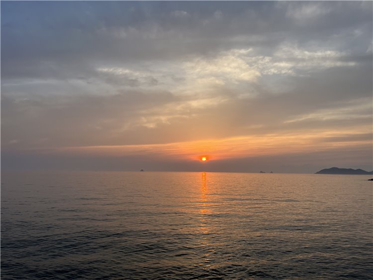 気温22℃、薄雲が空を覆っています。東の空には今朝1時頃に出た月が高く細く残っています。海には雲か霞が懸り、淡路島も小豆島も見えません。輪郭のはっきりしない紅い太陽が姿を見せました。今日は夏至、最北端の日の出です。明日から半年を掛けて日の出位置は南に移動します。釣り客は東波止に1人、赤灯台に4人、この波止に1人、テトラに2人です。