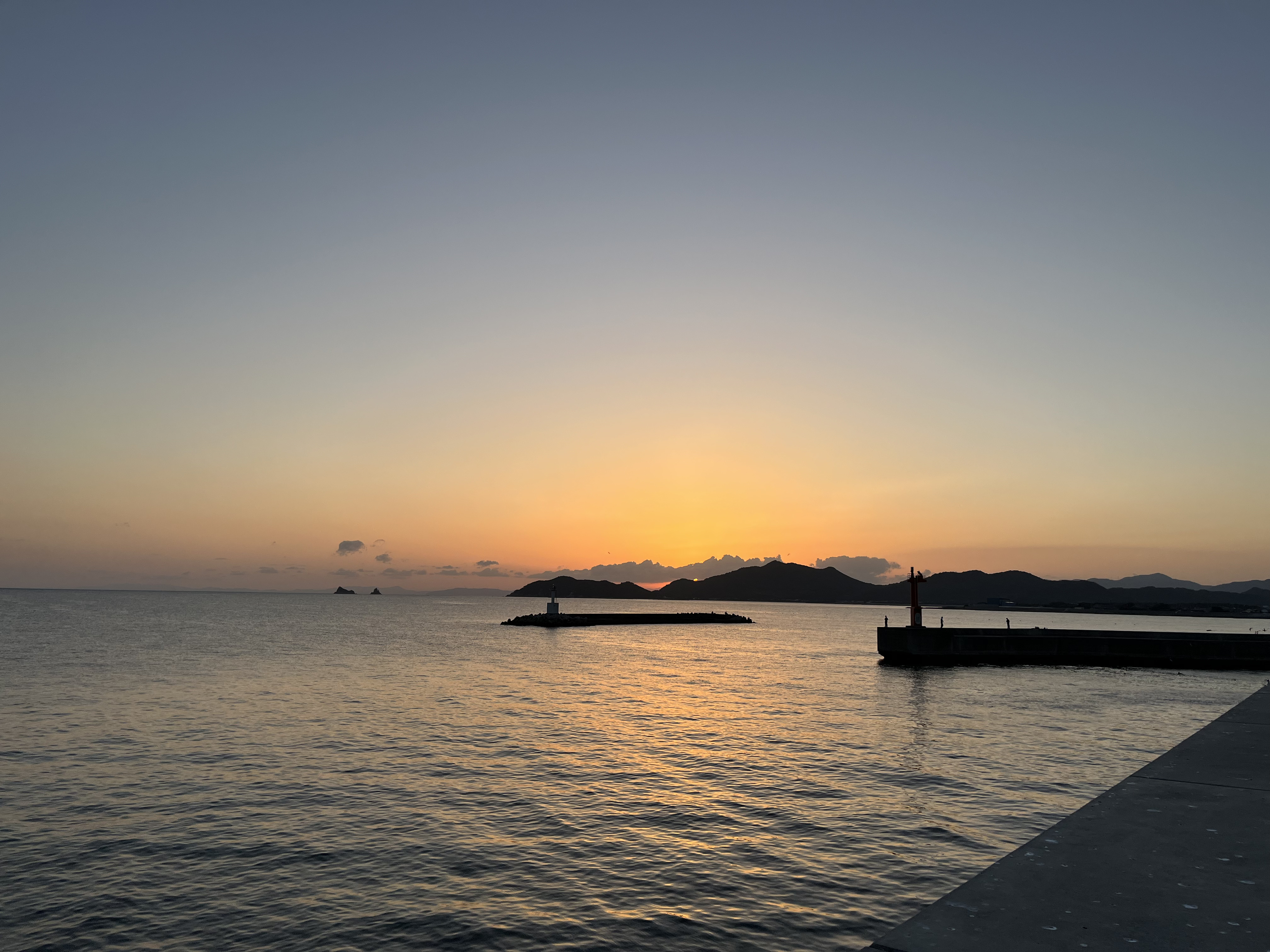 気温21℃、快晴、少しひんやりと心地よい風が吹いています。6時2分45秒、与治山の山の端に太陽が姿を見せ、直ぐ雲に隠れてしまいました。釣り客は東波止に1人、赤灯台に3人、この波止に5人と取巻き3人、港に2人です。この波止は便利です。今朝は外海のアジ釣りの後、港の中のイワシ釣りが始まりました。9/28(日)の「ほんのもり号寄港記念フェスタin三本松港」には、この港に大勢の子供たちやご家族連れの皆さんが来て下さり、晴天の下、一緒に楽しいいい時間を過ごすことができました。有難うございました。