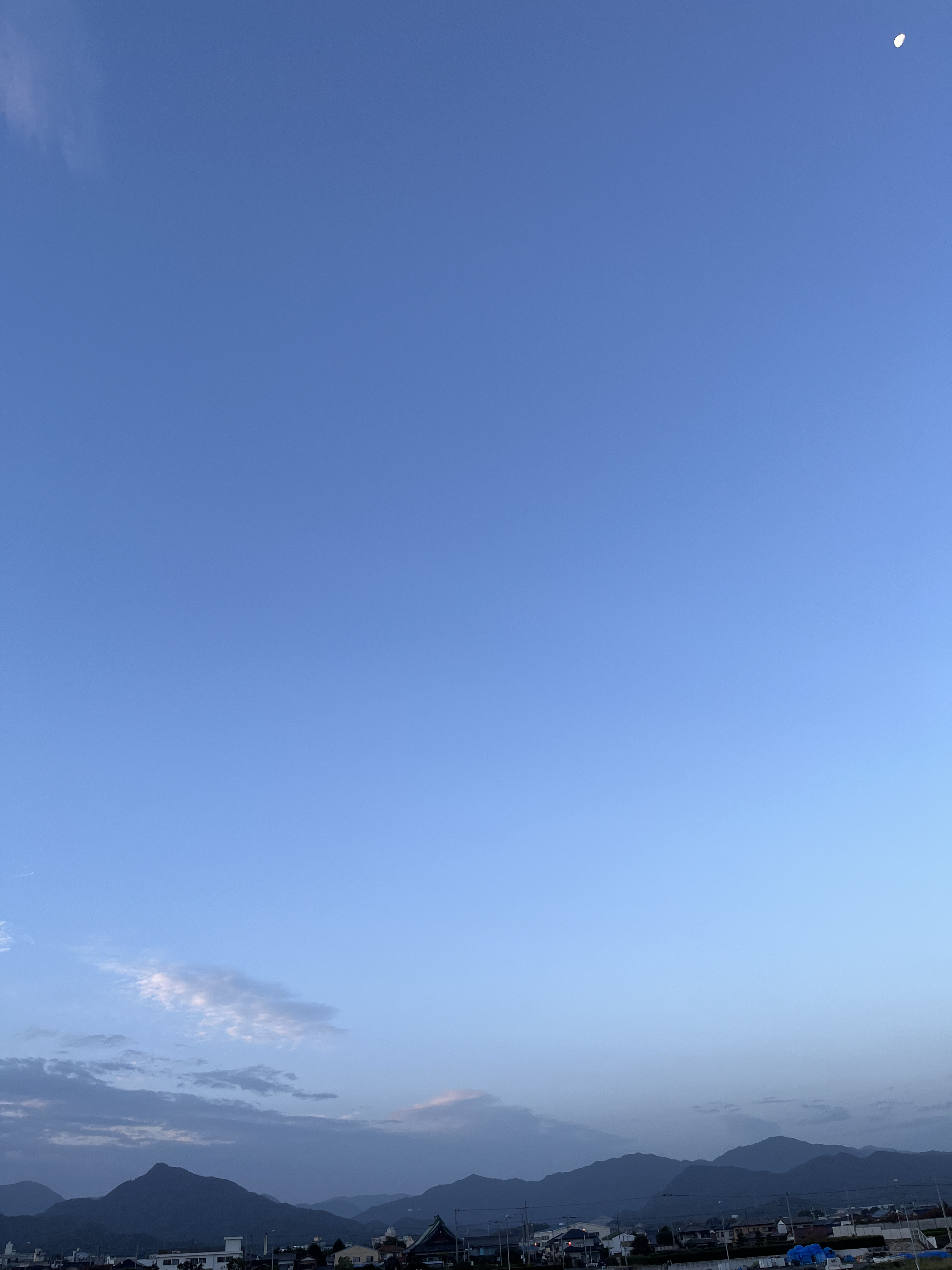 気温15℃、北西の風が吹き流し角度70°くらいで強く、海には白波が立っています。空は快晴、天空には十八日の居待ち月が残っています。太陽が伊座山塊の山の端を紅く染めながら出て姿を見せ、また、すぐ上の雲に隠れて行きました。釣り客は赤灯台に2人です。