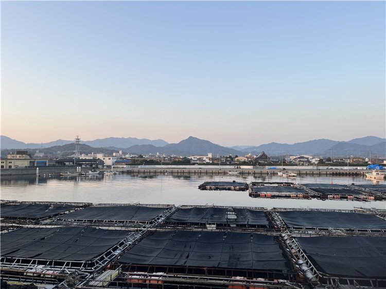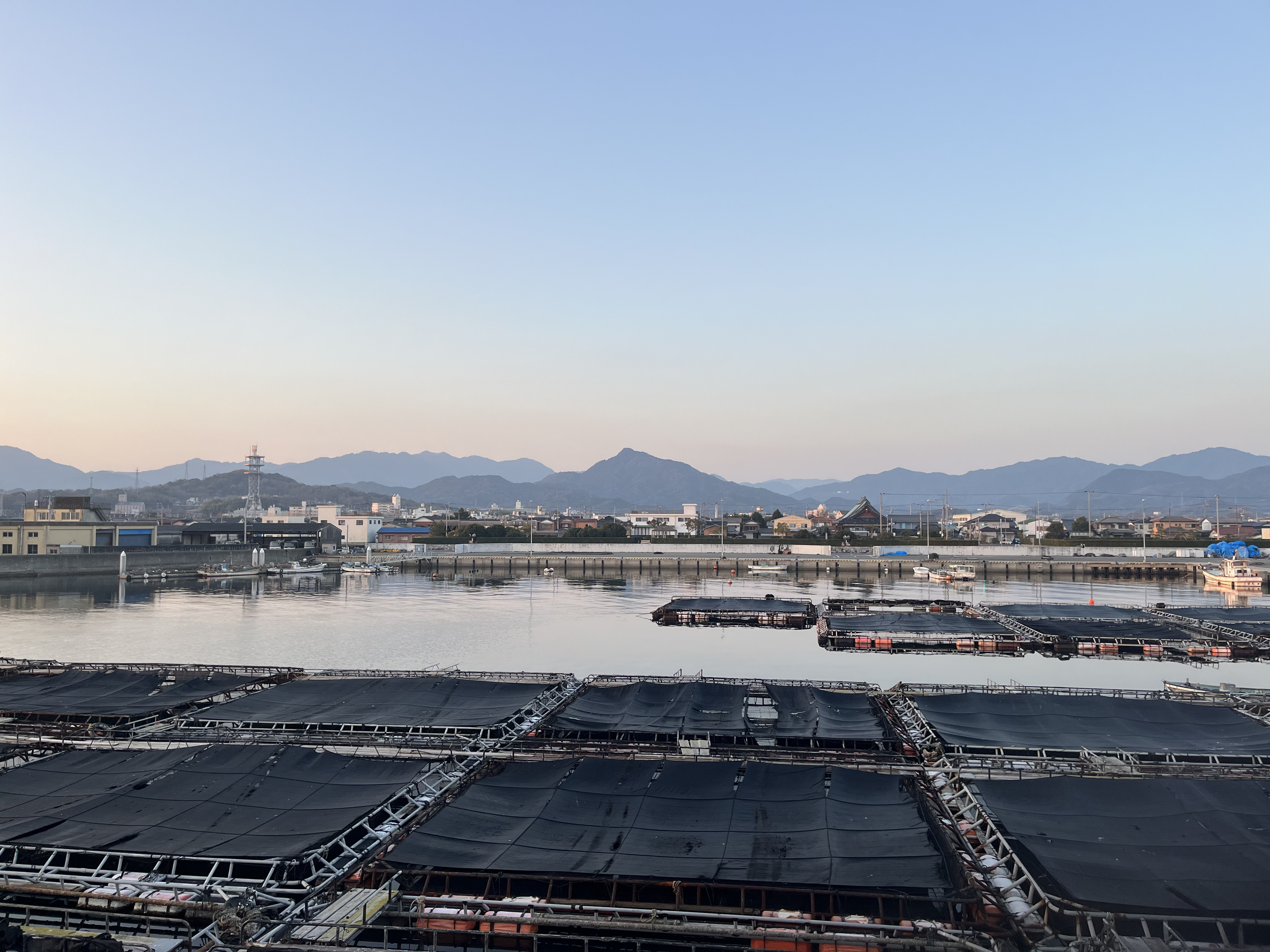 気温4℃、風もなく快晴、空には雲一つ見えません。水平線には霞が懸り、小豆島はうっすらと、淡路島は見えません。南の空には細くなった月が出ています。暫くして、紅い太陽が伊座山塊の南の斜面に出て来ました。阿讃の峰々にはまだ雪が残っています。釣り客はゼロ、港では生簀の作業が始まっています。テトラのすぐ沖で鵜が素潜り漁です。獲物の所為か、のどが太くなって海面に出て来ました。